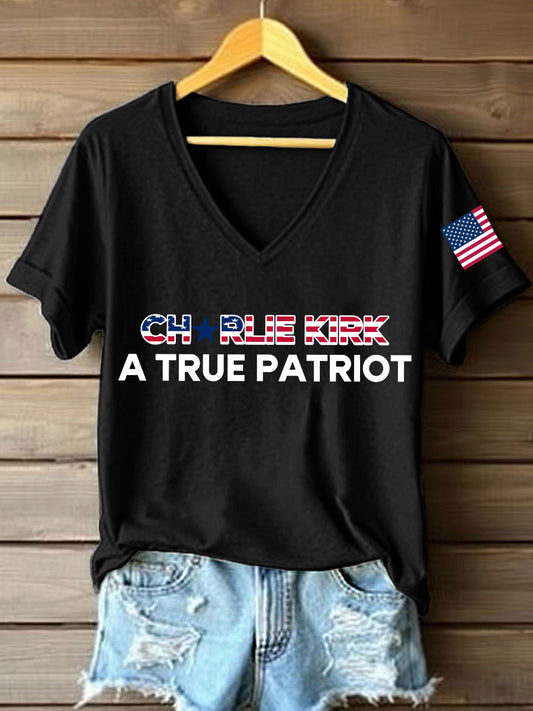 Women's A True Patriot Print V-Neck T-Shirt