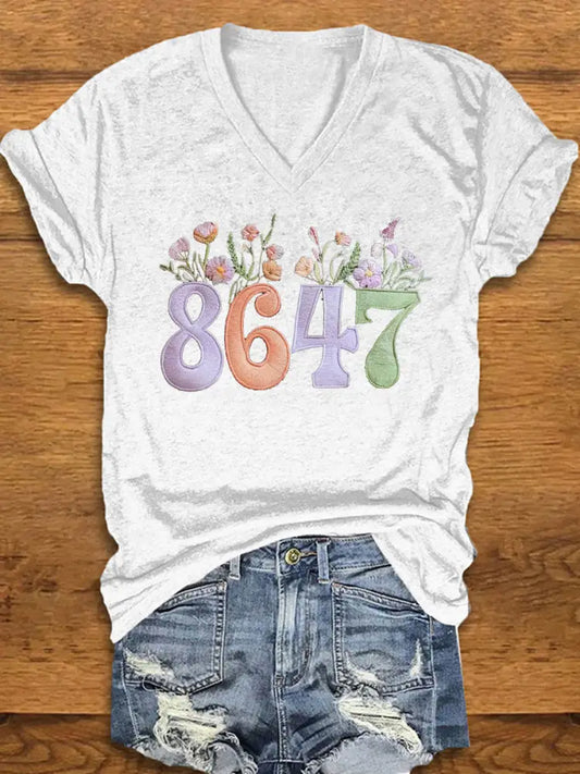 Women's 8647 Floral Print V-Neck T-Shirt