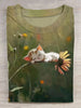 Cute Cat Printed Vintage Fashion Loose Short Sleeve T-Shirt
