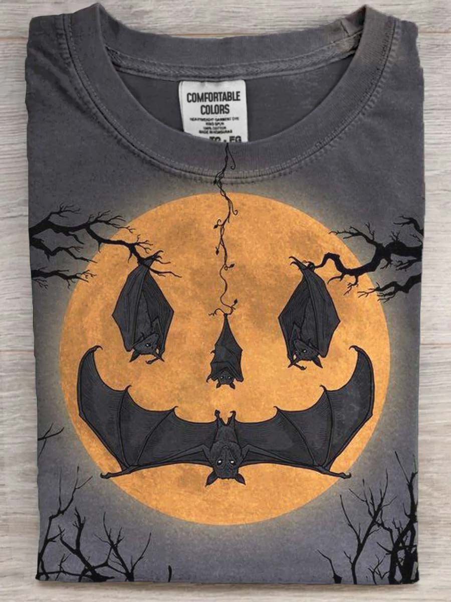 Halloween Bat Print Casual Short Sleeve T-Shirt