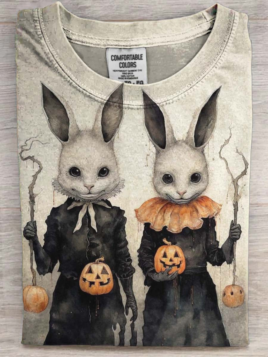 Halloween Evilable Bunny Print Casual Short Sleeve T-Shirt
