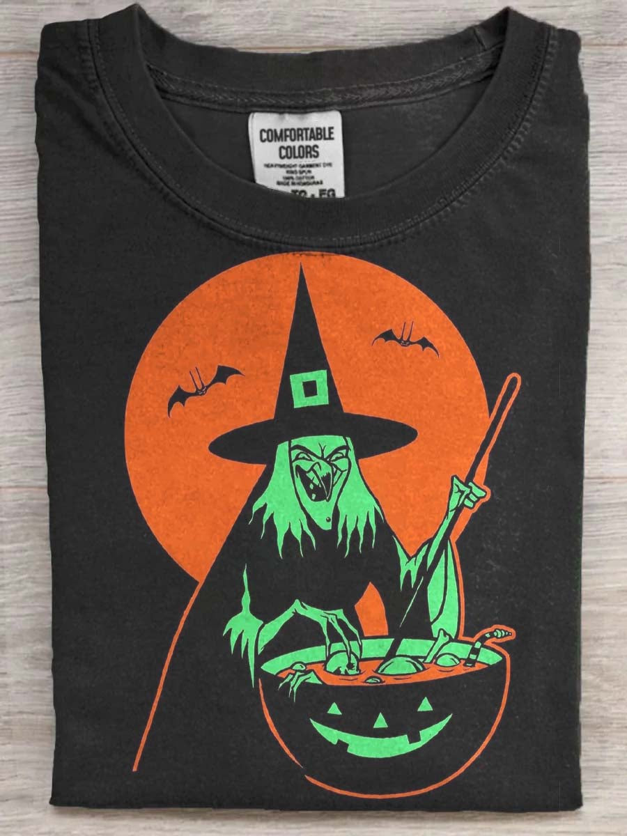 Halloween Wicked Witch Print Casual Short Sleeve T-Shirt