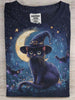 Halloween Wizard Cat Print Casual Short Sleeve T-Shirt