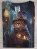 Halloween Wizard Cat Print Casual Short Sleeve T-Shirt