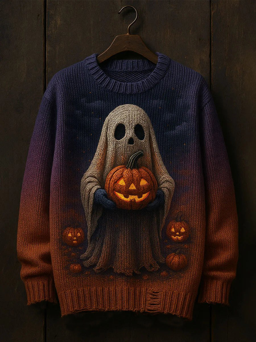 Men's Halloween Pumpkin Ghost Art Print Sweater