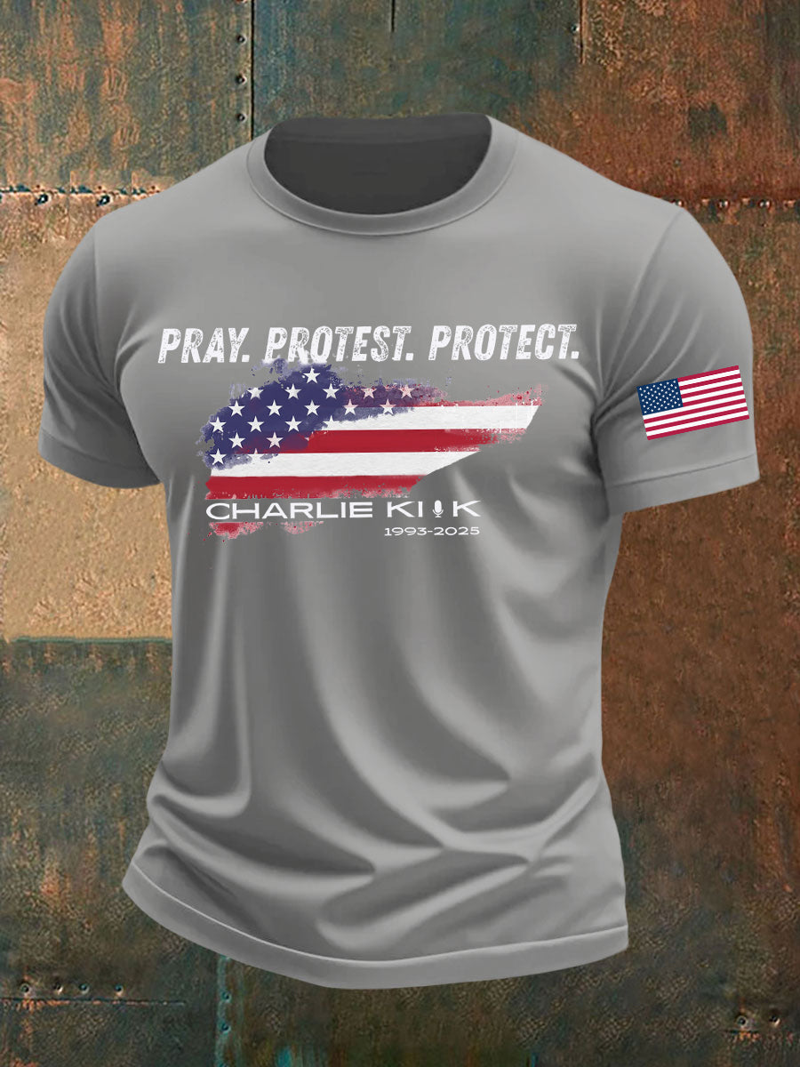 Men's Pray Protest Protect Charlie Kirk Printed T-shirt