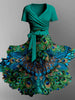 Retro Bohemian Floral Printed Vintage Cross Fold Short Sleeve Two-Piece Midi Dress