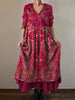 Retro Boho Floral Botany Print Vintage V-Neck Double Hemline Cotton Long Sleeve Midi Dress