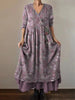 Retro Boho Floral Print Vintage V-Neck Double Hemline Cotton Long Sleeve Midi Dress