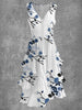 Retro Floral Art Print Sleeveless V-Neck Button Up Elegant Chic Flowing Midi Dress