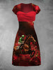 Retro Horse Racing Floral Art Print Casual Short Sleeve Dress
