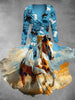 Vintage Derby Print V Neck Midi Two Piece Long Sleeve Dressss