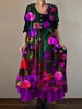 Vintage Round Neck Bohemian Floral Print Elegant Chic Loose Midi Dress