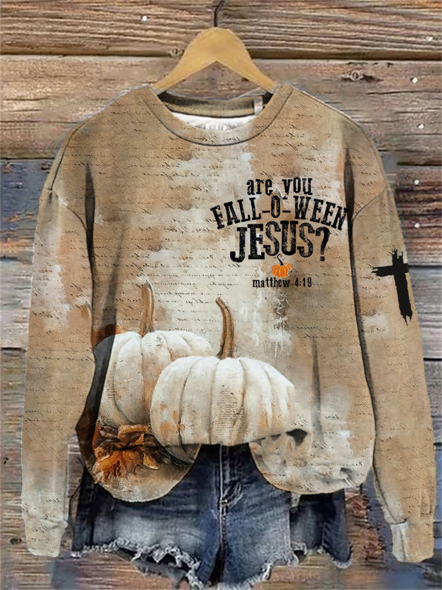 Women's Are You Fall-O-Ween Jesus Halloween Print Sweatshirt
