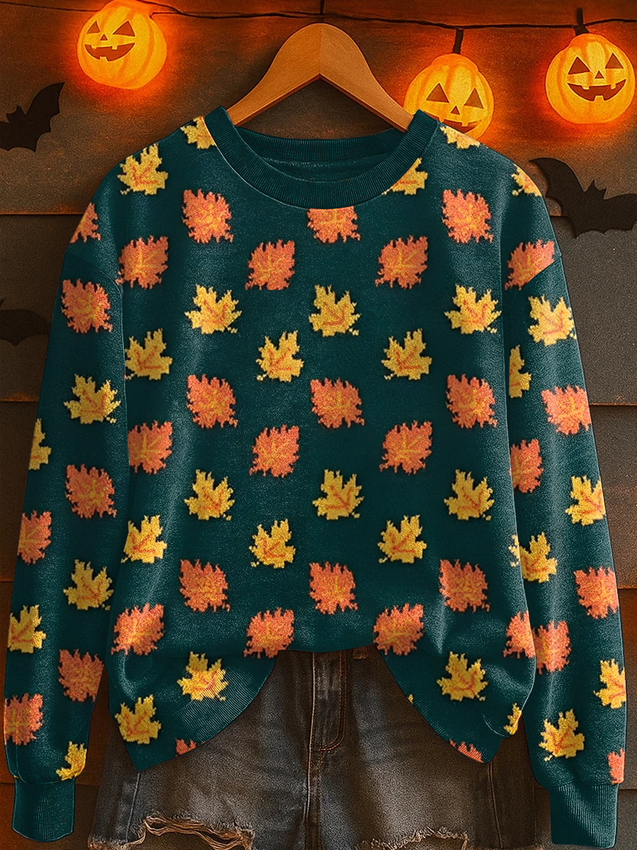 Women's Autumn Maple Leaf Print Casual Sweatshirt