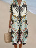 Women's Copatucano Art Printed Cotton Linen V-Neck Short Sleeve Dress