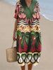 Women's Copatucano Art Printed Cotton Linen V-Neck Short Sleeve Dress