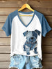 Women's Cute Dog Patchwork Art V-Neck T-Shirt
