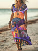 Women's Dot Painting Art Print Cotton Linen V-Neck Short Sleeve Dress