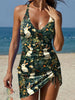 Women's Easter Bunny Floral Print Ruched Swimsuit Set