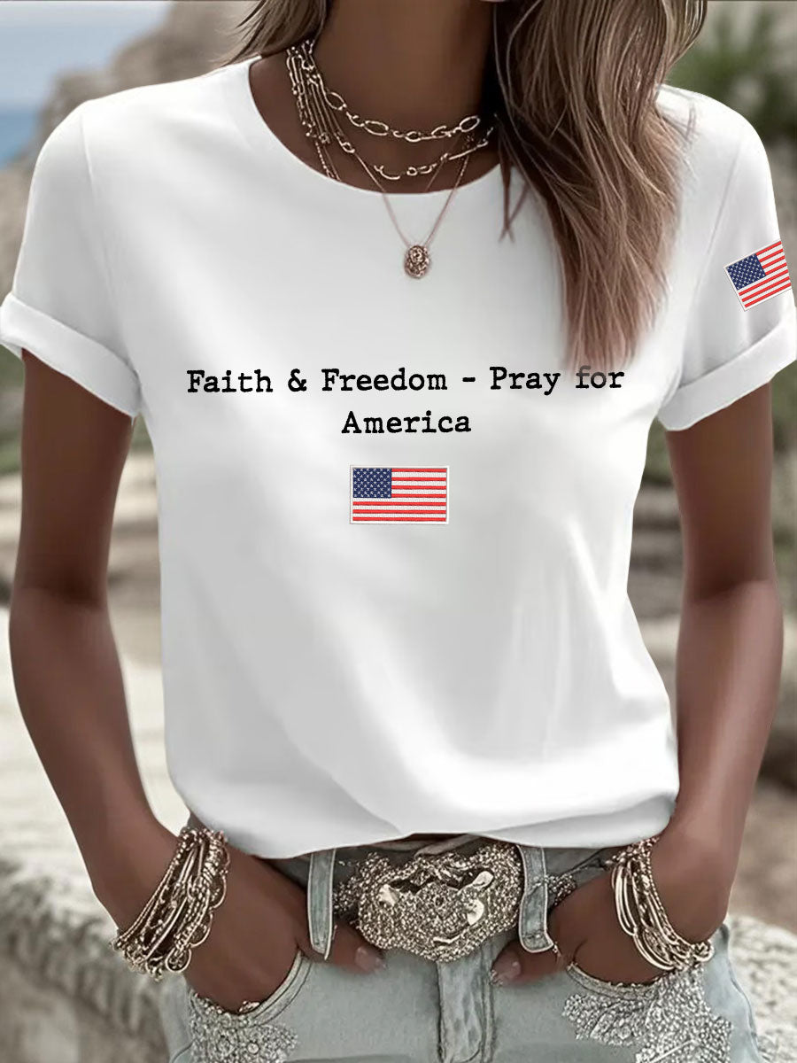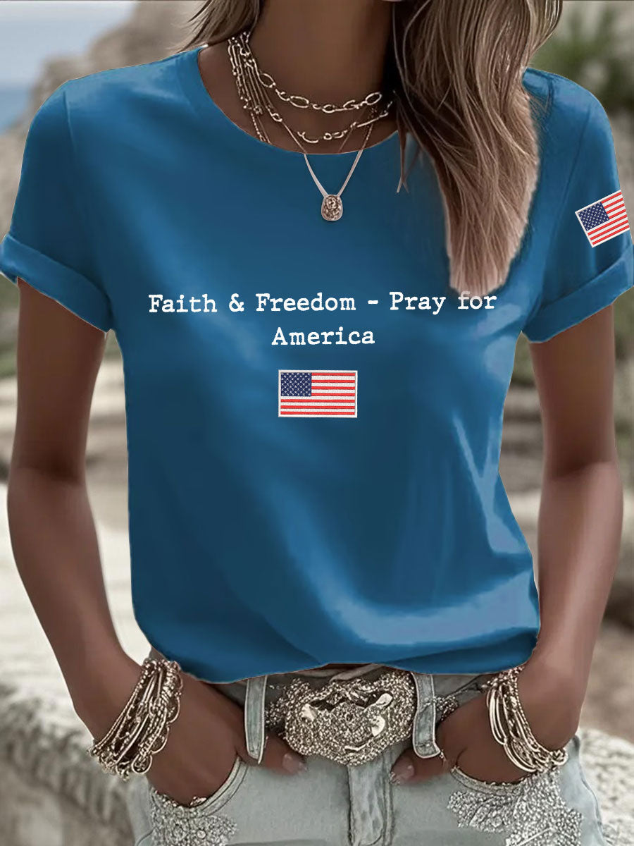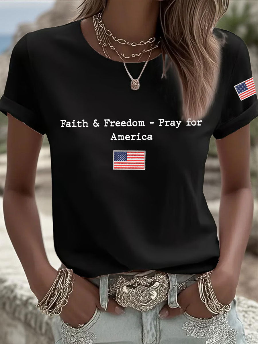 Women's Faith & Freedom Pray for America Printed Casual T-shirt