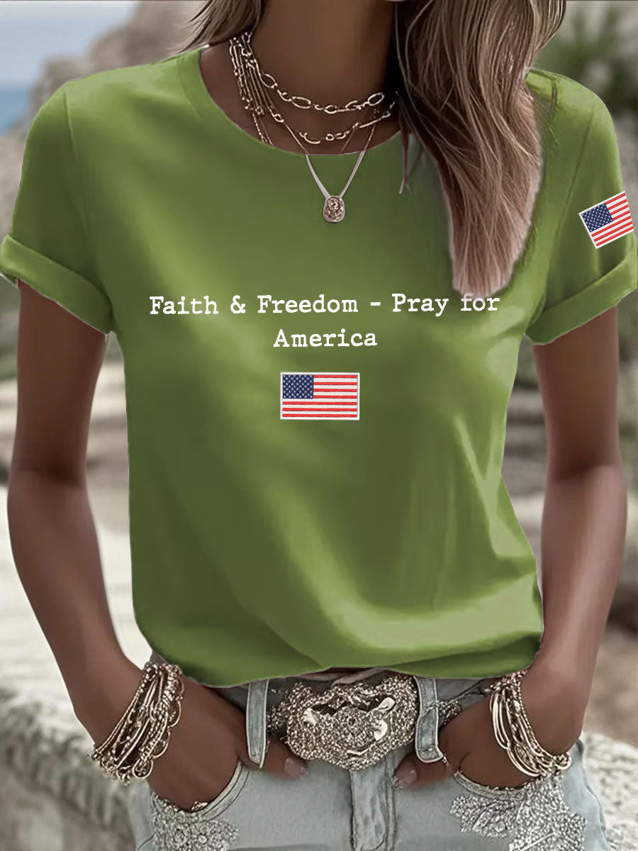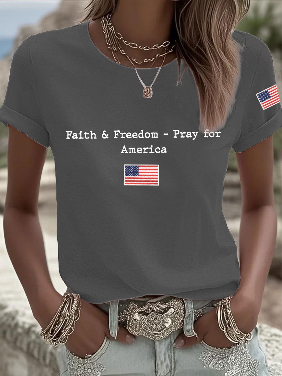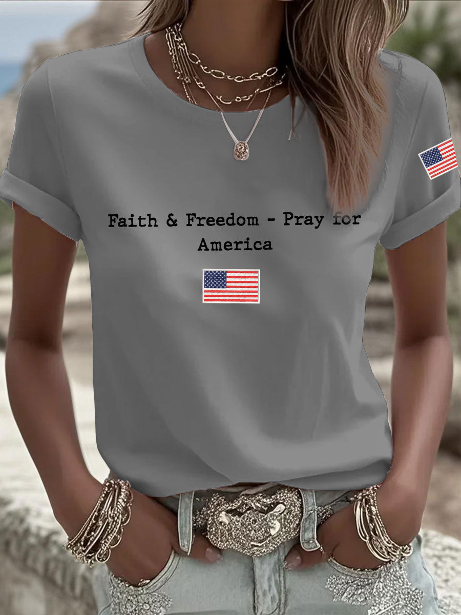 Women's Faith & Freedom Pray for America Printed Casual T-shirt
