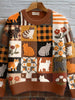 Women's Fall Floral Cat Crochet Pattern Cozy Knit Sweater