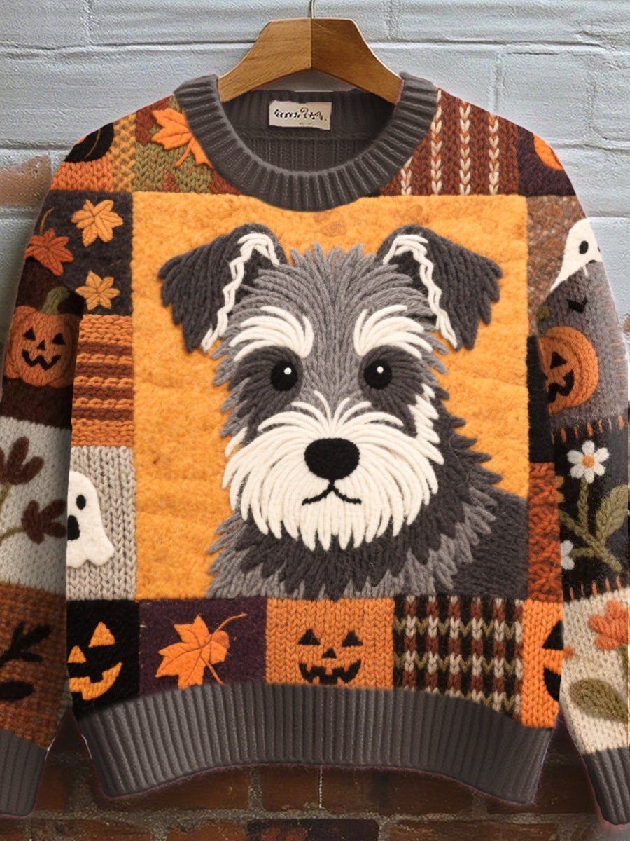 Women's Fall Inspired Schnauzer Felt Art Cozy Knit Sweater