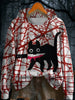 Women's Funny Halloween Blood stain Black Cat With Knife Print Crew Neck Sweatshirt