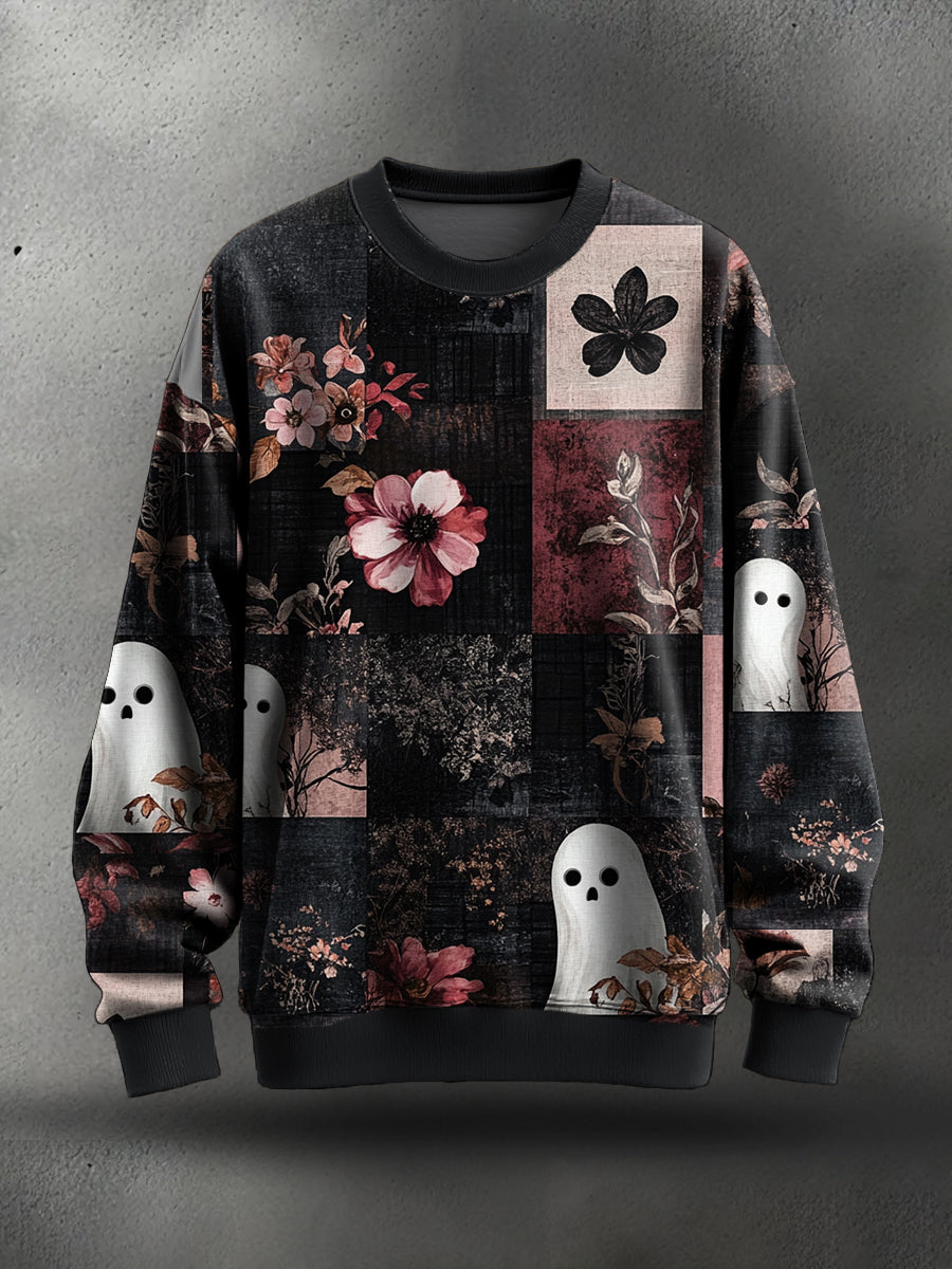 Women's Funny Halloween Boo Floral Art Printed Sweatshirt