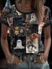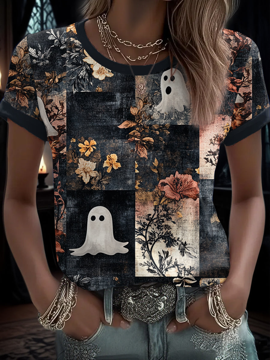 Women's Funny Halloween Boo Floral Art Printed T-Shirt