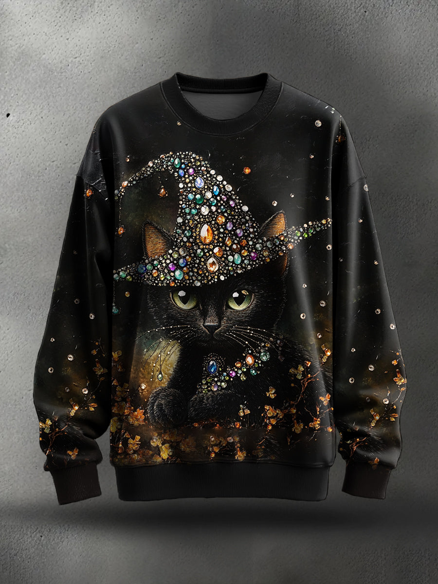 Women's Funny Halloween Cat Art Printed Sweatshirt