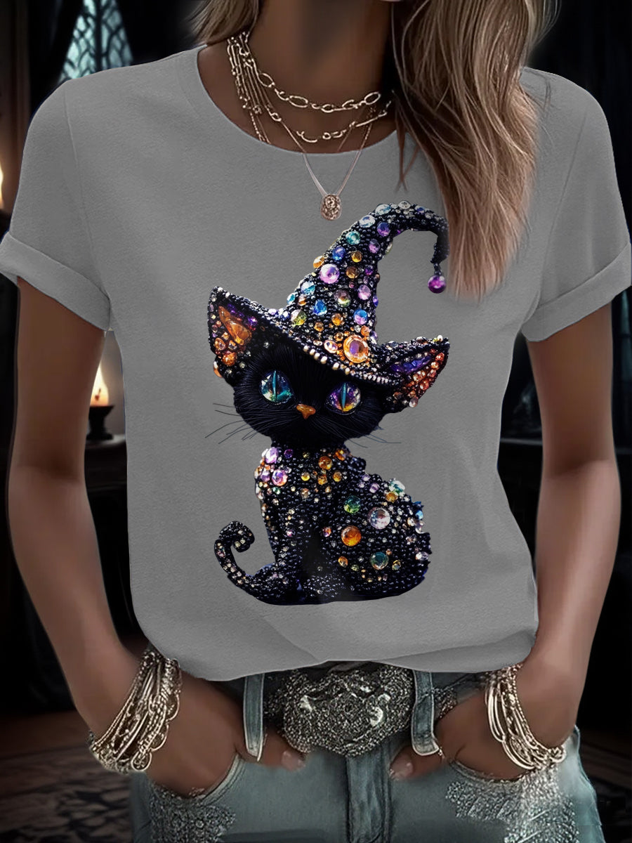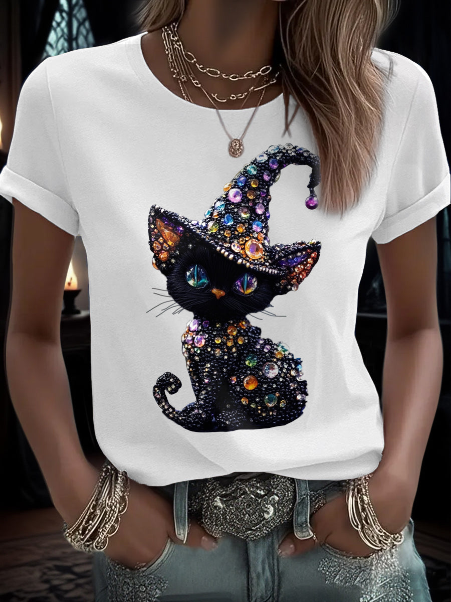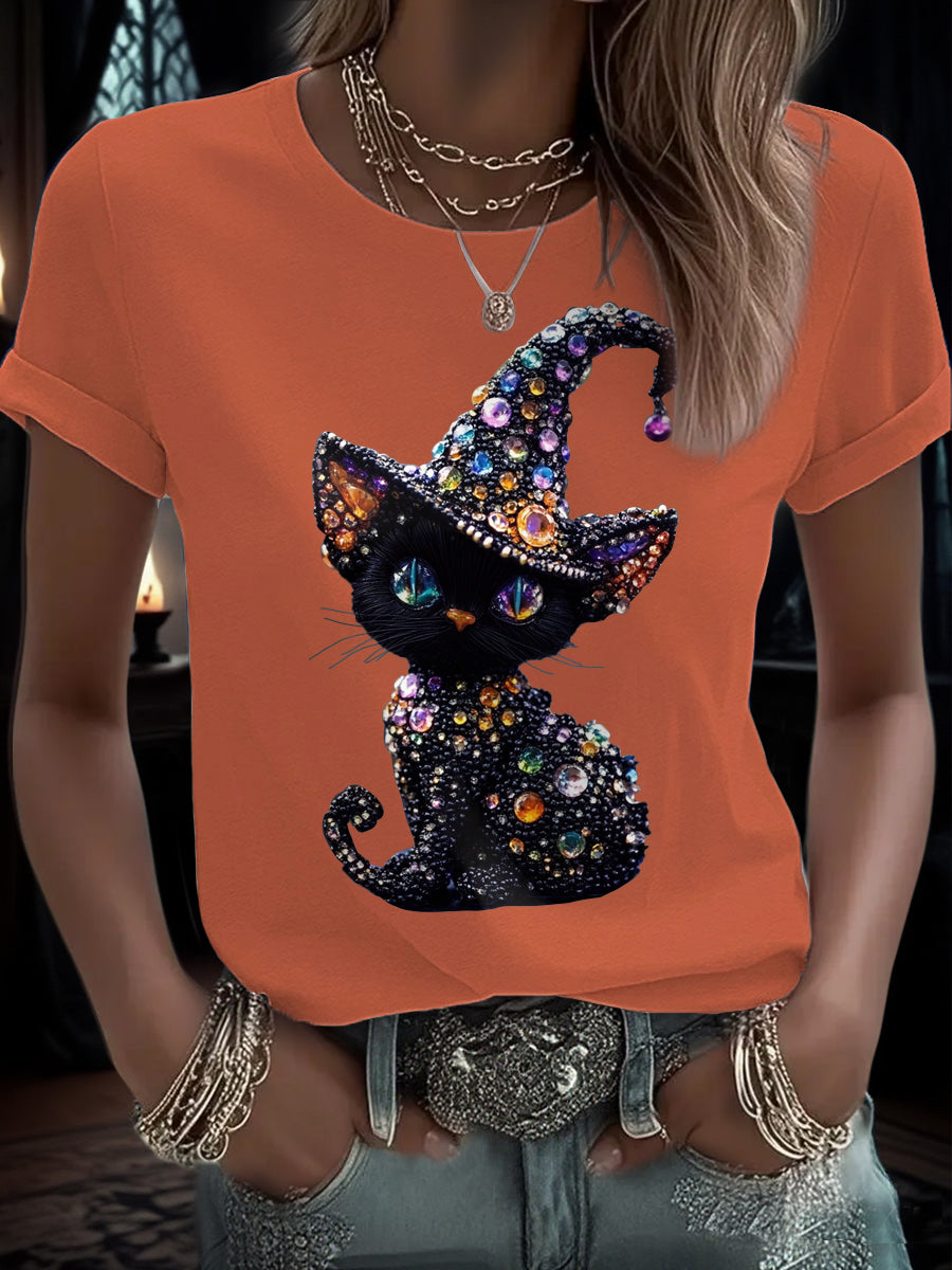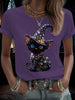 Women's Funny Halloween Cat Art Printed T-Shirt