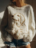 Women's Fuzzy Golden Retriever Dog Felt Cozy Knit Sweater