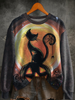 Women's Ha0lloween Black Cat Print Regular Sweatshirt