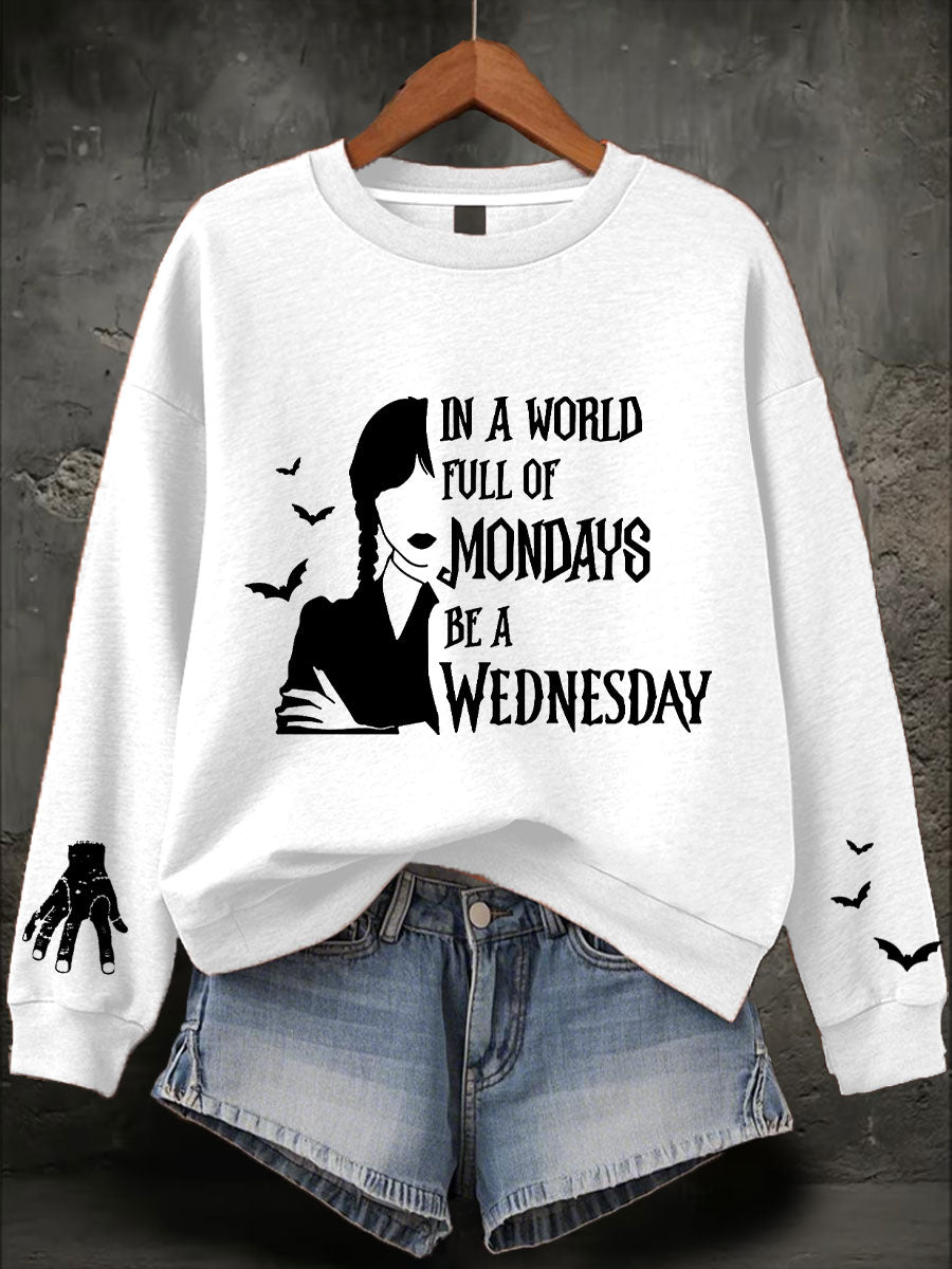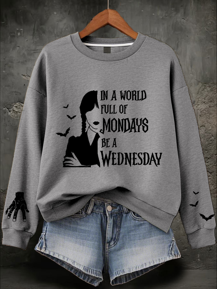 Women's Halloween Be A Wednesday Printed Sweatshirt
