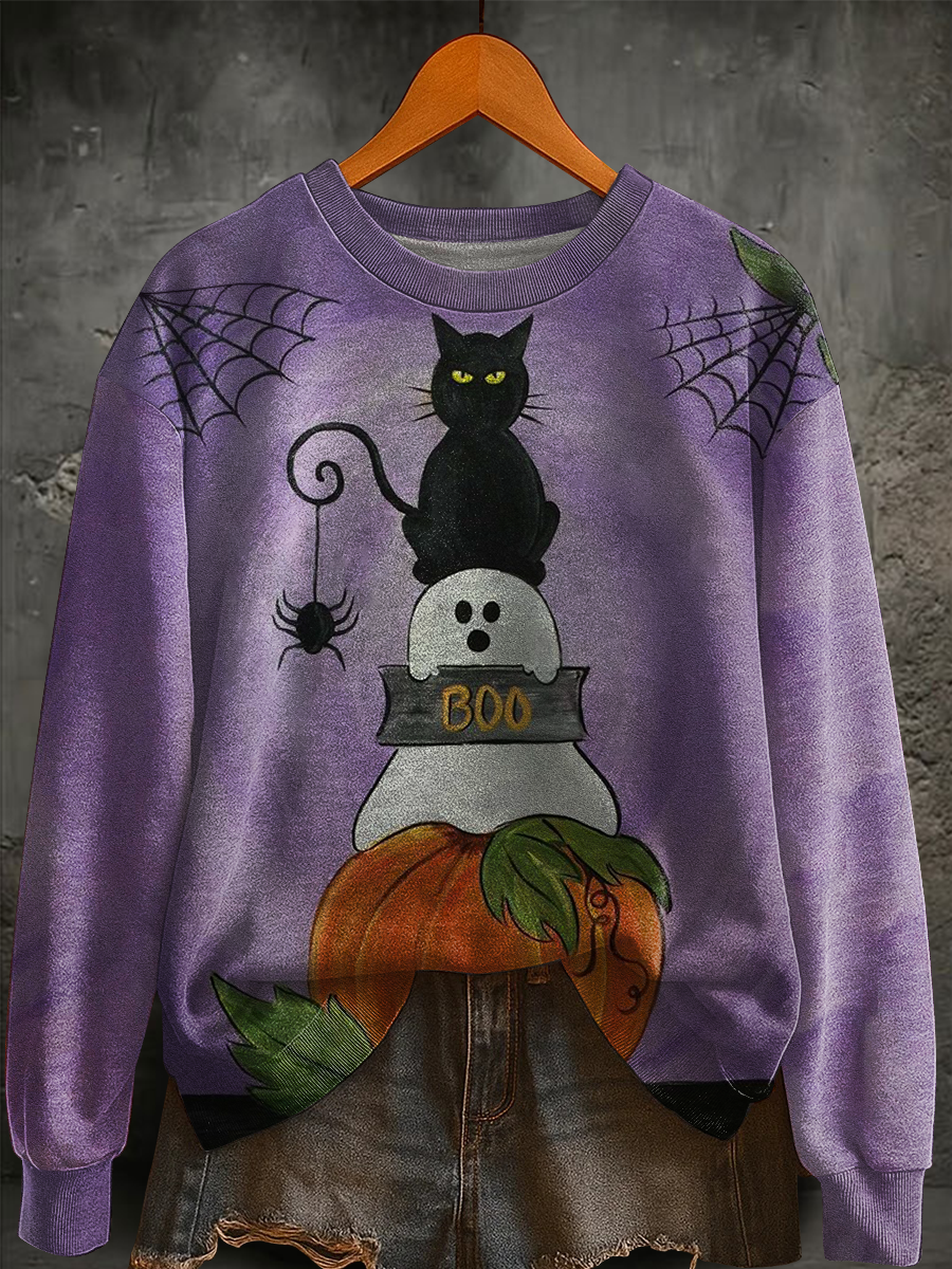 Women's Halloween Black Cat Ghost Regular Sweatshirt
