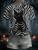 Women's Halloween Black Cat Stripes Print Casual Tee