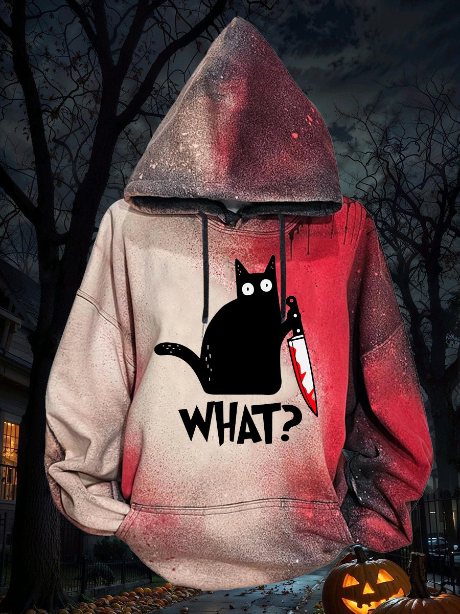 Women's Halloween Bloodstained Black Cat Hoodie
