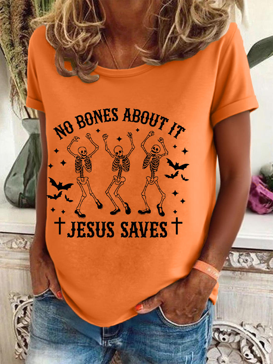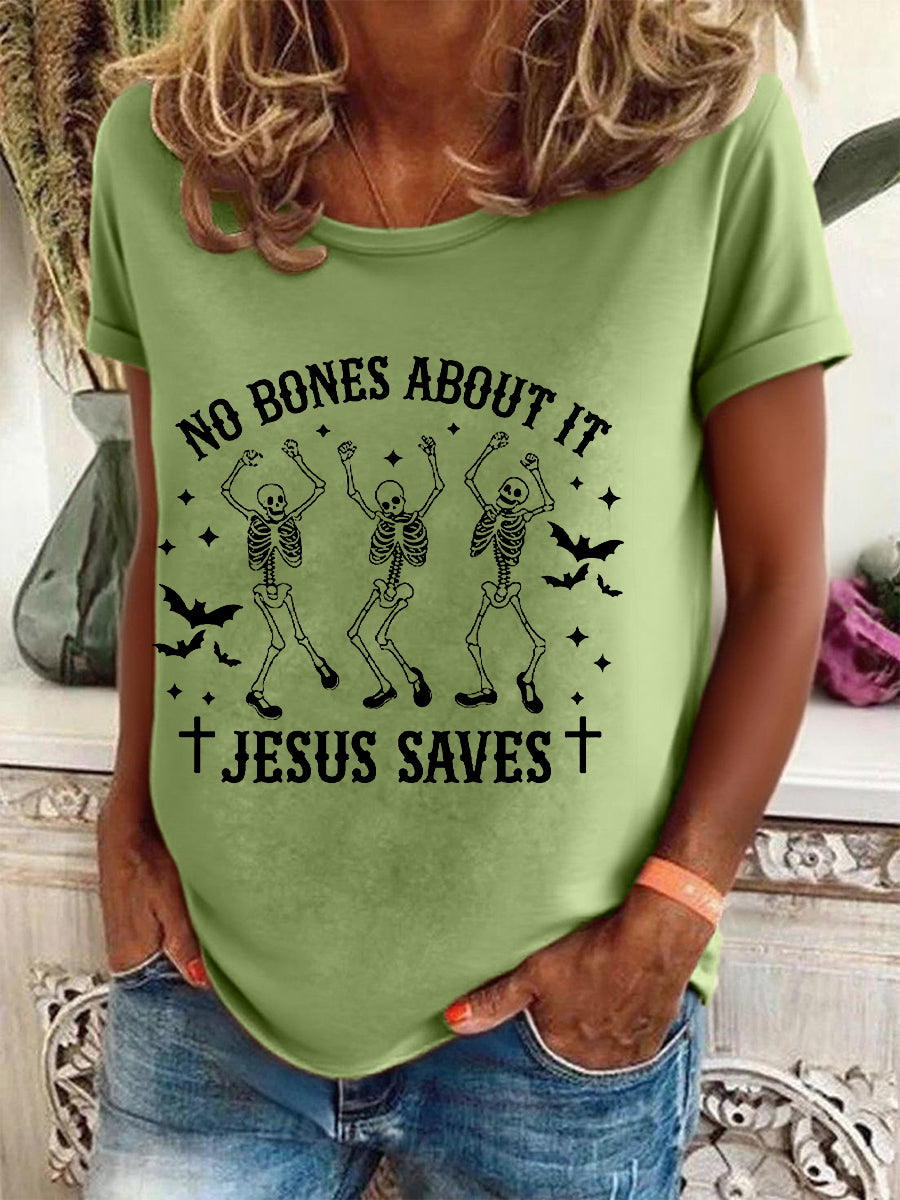 Women's Halloween Christian No Bones About It Jesus Saves Short Sleeve T-Shirt