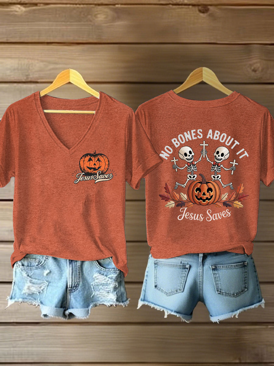 Women's Halloween Christian No Bones About It Jesus Saves Short Sleeve T-Shirt