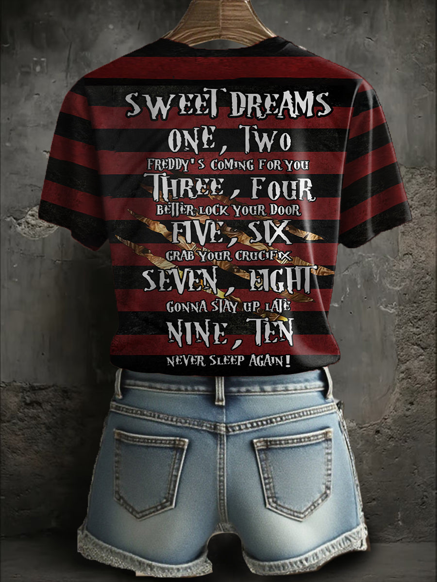 Women's Halloween Horror Sweet Dreams Printed T-shirt