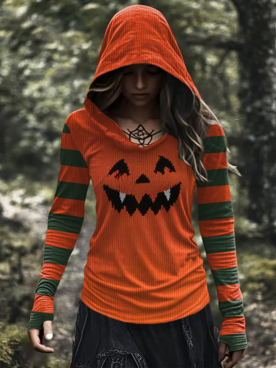 Women's Halloween Pumpkin Face Print Casual Hoodie