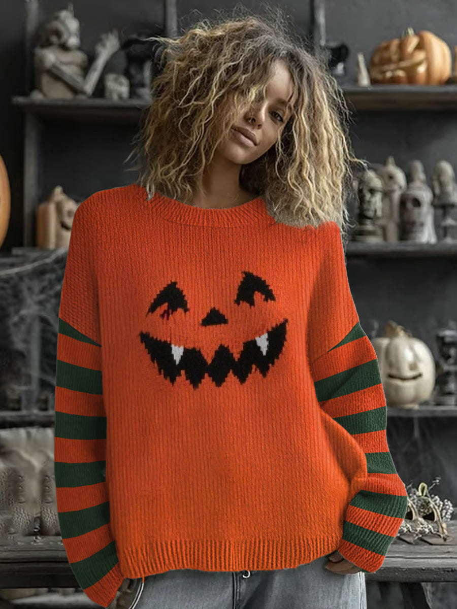 Women's Halloween Pumpkin Face Print Casual Sweatshirt