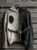 Women's Halloween Spooky Face Contrast Stitched Hooded Cozy Knit Sweater
