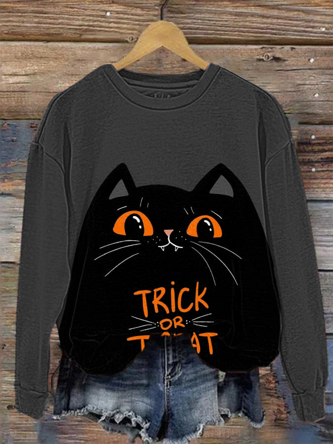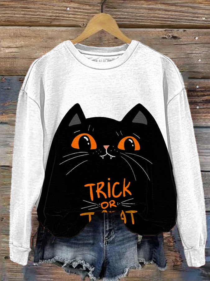 Women's Halloween Trick Or Treat Printed Sweatshirt