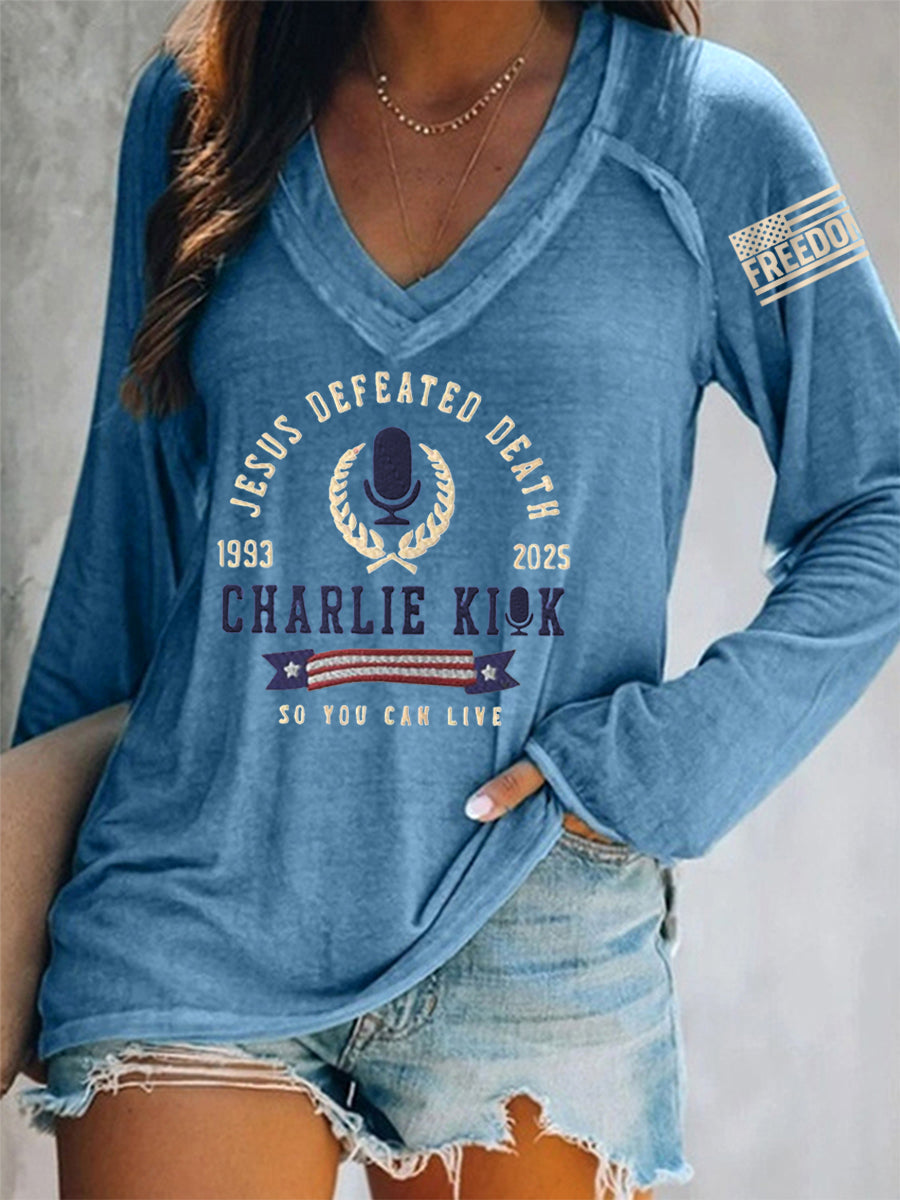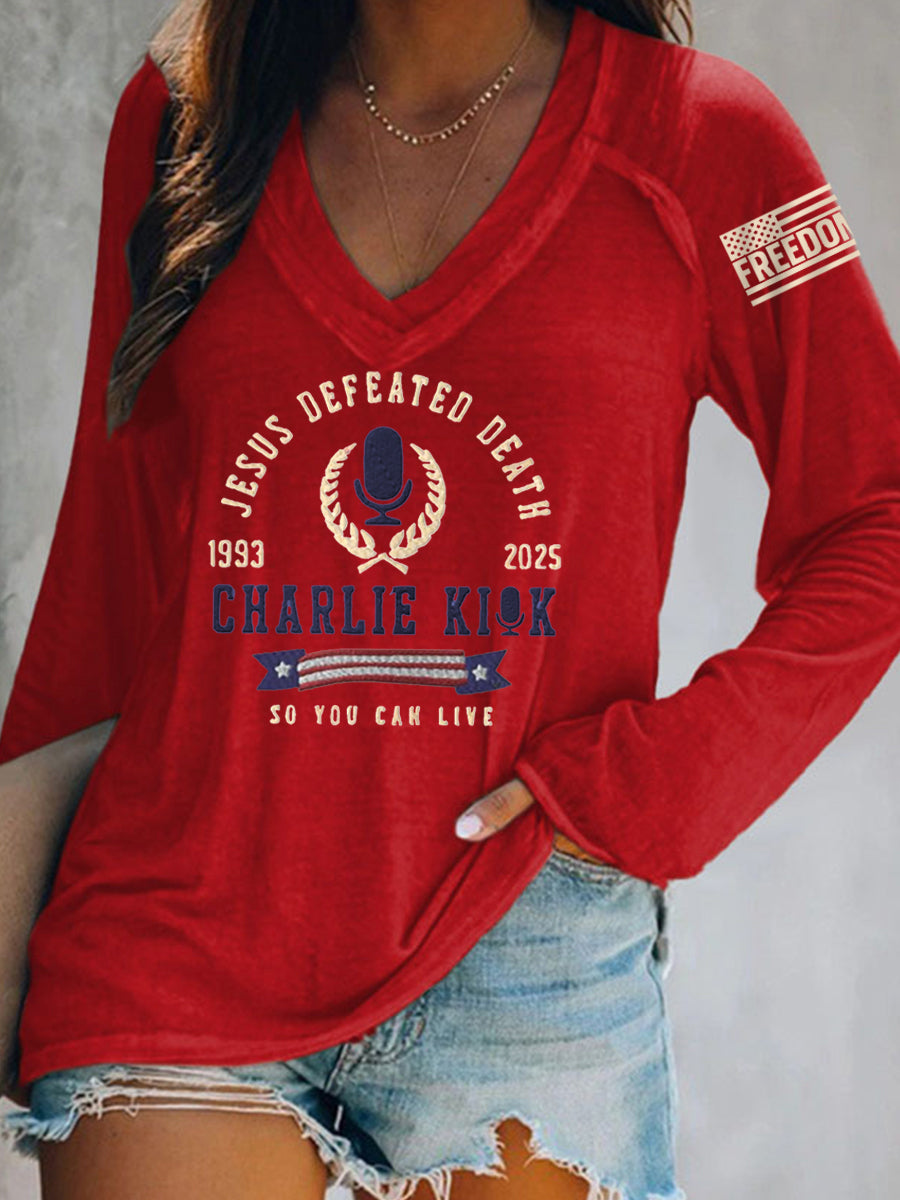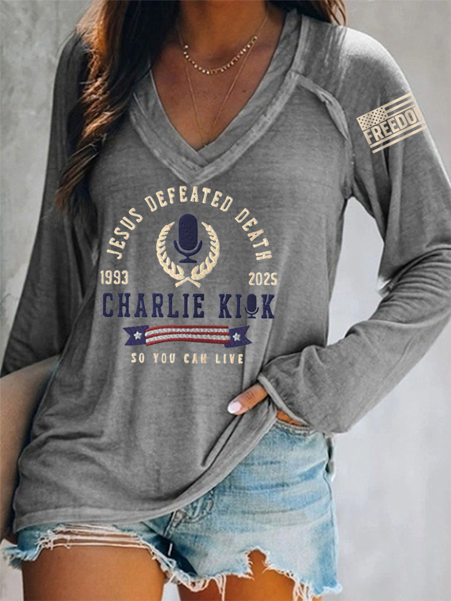 Women's Jesus Defeated Death, So You Can Live R.I.P Charlie Kirk Long-Sleeve T-Shirt