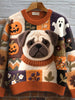 Women's Lovely Pug Felt Art Cozy Knit Sweater