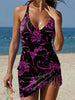 Women's Vintage Abstract Floral Print Ruched Swimsuit Set