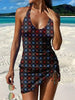 Women's Vintage Art Print Pleated V-Neck Casual Swimsuit